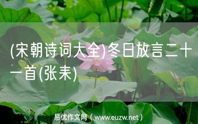 (宋朝詩詞大全)冬日放言二十一首(張耒)由易優(yōu)作文(易優(yōu)悅讀)為大家精心整理發(fā)布,學(xué)作文,學(xué)閱讀,提升語文閱讀寫作能力,就來易優(yōu)悅讀。作文培訓(xùn),閱讀培訓(xùn),易優(yōu)悅讀助力每個(gè)孩子成為語文學(xué)霸。