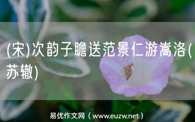 (宋)次韻子瞻送范景仁游嵩洛(蘇轍)由易優(yōu)作文(易優(yōu)悅讀)為大家精心整理發(fā)布,學(xué)作文,學(xué)閱讀,提升語文閱讀寫作能力,就來易優(yōu)悅讀。作文培訓(xùn),閱讀培訓(xùn),易優(yōu)悅讀助力每個(gè)孩子成為語文學(xué)霸。 “易優(yōu)閱讀寶”,中小學(xué)生語文題庫,語文成績提升就是快。