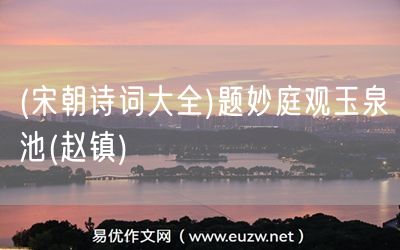 (宋朝詩詞大全)題妙庭觀玉泉池(趙鎮(zhèn))由易優(yōu)作文(易優(yōu)悅讀)為大家精心整理發(fā)布,學(xué)作文,學(xué)閱讀,提升語文閱讀寫作能力,就來易優(yōu)悅讀。作文培訓(xùn),閱讀培訓(xùn),易優(yōu)悅讀助力每個(gè)孩子成為語文學(xué)霸。