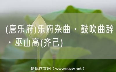(唐樂府)樂府雜曲·鼓吹曲辭·巫山高(齊己)由易優(yōu)作文(易優(yōu)悅讀)為大家精心整理發(fā)布,學作文,學閱讀,提升語文閱讀寫作能力,就來易優(yōu)悅讀。作文培訓,閱讀培訓,易優(yōu)悅讀助力每個孩子成為語文學霸。