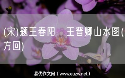 (宋)題王春陽傚王晉卿山水圖(方回)由易優(yōu)作文(易優(yōu)悅讀)為大家精心整理發(fā)布,學(xué)作文,學(xué)閱讀,提升語文閱讀寫作能力,就來易優(yōu)悅讀。作文培訓(xùn),閱讀培訓(xùn),易優(yōu)悅讀助力每個(gè)孩子成為語文學(xué)霸。