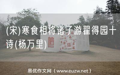 (宋)寒食相將諸子游翟得園十詩(楊萬里)由易優(yōu)作文(易優(yōu)悅讀)為大家精心整理發(fā)布,學(xué)作文,學(xué)閱讀,提升語文閱讀寫作能力,就來易優(yōu)悅讀。作文培訓(xùn),閱讀培訓(xùn),易優(yōu)悅讀助力每個孩子成為語文學(xué)霸。