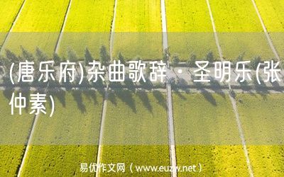 易優(yōu)作文網(wǎng)——(唐樂府)雜曲歌辭·圣明樂(張仲素)