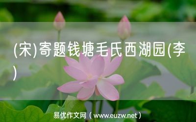 (宋)寄題錢塘毛氏西湖園(李覯)由易優(yōu)作文(易優(yōu)悅讀)為大家精心整理發(fā)布,學(xué)作文,學(xué)閱讀,提升語文閱讀寫作能力,就來易優(yōu)悅讀。作文培訓(xùn),閱讀培訓(xùn),易優(yōu)悅讀助力每個(gè)孩子成為語文學(xué)霸。