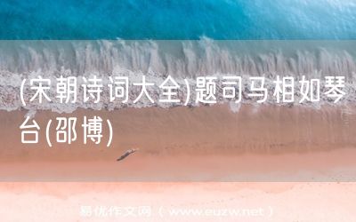 (宋朝詩詞大全)題司馬相如琴臺(邵博)由易優(yōu)作文(易優(yōu)悅讀)為大家精心整理發(fā)布,學(xué)作文,學(xué)閱讀,提升語文閱讀寫作能力,就來易優(yōu)悅讀。作文培訓(xùn),閱讀培訓(xùn),易優(yōu)悅讀助力每個孩子成為語文學(xué)霸。