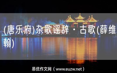 (唐樂(lè)府)雜歌謠辭·古歌(薛維翰)由易優(yōu)作文(易優(yōu)悅讀)為大家精心整理發(fā)布,學(xué)作文,學(xué)閱讀,提升語(yǔ)文閱讀寫作能力,就來(lái)易優(yōu)悅讀。作文培訓(xùn),閱讀培訓(xùn),易優(yōu)悅讀助力每個(gè)孩子成為語(yǔ)文學(xué)霸。