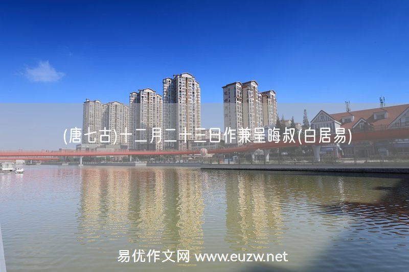 (唐七古)十二月二十三日作兼呈晦叔(白居易)由易優(yōu)作文(易優(yōu)悅讀)為大家精心整理發(fā)布,學(xué)作文,學(xué)閱讀,提升語文閱讀寫作能力,就來易優(yōu)悅讀。作文培訓(xùn),閱讀培訓(xùn),易優(yōu)悅讀助力每個(gè)孩子成為語文學(xué)霸。