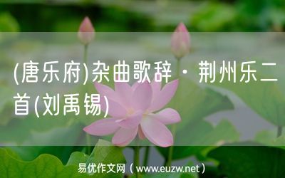 (唐樂府)雜曲歌辭·荊州樂二首(劉禹錫)由易優(yōu)作文(易優(yōu)悅讀)為大家精心整理發(fā)布,學(xué)作文,學(xué)閱讀,提升語文閱讀寫作能力,就來易優(yōu)悅讀。作文培訓(xùn),閱讀培訓(xùn),易優(yōu)悅讀助力每個(gè)孩子成為語文學(xué)霸。