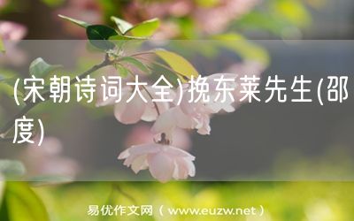 (宋朝詩詞大全)挽東萊先生(邵度)由易優(yōu)作文(易優(yōu)悅讀)為大家精心整理發(fā)布,學(xué)作文,學(xué)閱讀,提升語文閱讀寫作能力,就來易優(yōu)悅讀。作文培訓(xùn),閱讀培訓(xùn),易優(yōu)悅讀助力每個孩子成為語文學(xué)霸。