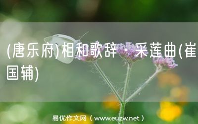 (唐樂府)相和歌辭·采蓮曲(崔國輔)由易優(yōu)作文(易優(yōu)悅讀)為大家精心整理發(fā)布,學(xué)作文,學(xué)閱讀,提升語文閱讀寫作能力,就來易優(yōu)悅讀。作文培訓(xùn),閱讀培訓(xùn),易優(yōu)悅讀助力每個孩子成為語文學(xué)霸。