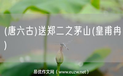 (唐六古)送鄭二之茅山(皇甫冉)由易優(yōu)作文(易優(yōu)悅讀)為大家精心整理發(fā)布,學(xué)作文,學(xué)閱讀,提升語(yǔ)文閱讀寫作能力,就來(lái)易優(yōu)悅讀。作文培訓(xùn),閱讀培訓(xùn),易優(yōu)悅讀助力每個(gè)孩子成為語(yǔ)文學(xué)霸。