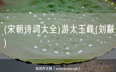 易優(yōu)作文網(wǎng)——(宋朝詩詞大全)游太玉峰(劉黻)