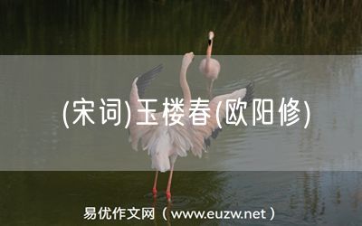 (宋詞)玉樓春(歐陽修)由易優(yōu)作文(易優(yōu)悅讀)為大家精心整理發(fā)布,學(xué)作文,學(xué)閱讀,提升語文閱讀寫作能力,就來易優(yōu)悅讀。作文培訓(xùn),閱讀培訓(xùn),易優(yōu)悅讀助力每個(gè)孩子成為語文學(xué)霸。