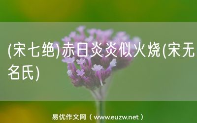 (宋七絕)赤日炎炎似火燒(宋無(wú)名氏)由易優(yōu)作文(易優(yōu)悅讀)為大家精心整理發(fā)布,學(xué)作文,學(xué)閱讀,提升語(yǔ)文閱讀寫(xiě)作能力,就來(lái)易優(yōu)悅讀。作文培訓(xùn),閱讀培訓(xùn),易優(yōu)悅讀助力每個(gè)孩子成為語(yǔ)文學(xué)霸。