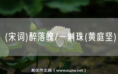 (宋詞)醉落魄/一斛珠(黃庭堅)由易優(yōu)作文(易優(yōu)悅讀)為大家精心整理發(fā)布,學作文,學閱讀,提升語文閱讀寫作能力,就來易優(yōu)悅讀。作文培訓,閱讀培訓,易優(yōu)悅讀助力每個孩子成為語文學霸。