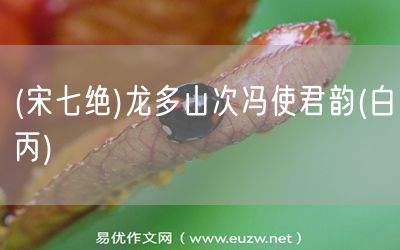 (宋七絕)龍多山次馮使君韻(白丙)由易優(yōu)作文(易優(yōu)悅讀)為大家精心整理發(fā)布,學(xué)作文,學(xué)閱讀,提升語(yǔ)文閱讀寫(xiě)作能力,就來(lái)易優(yōu)悅讀。作文培訓(xùn),閱讀培訓(xùn),易優(yōu)悅讀助力每個(gè)孩子成為語(yǔ)文學(xué)霸。