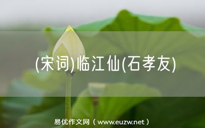 (宋詞)臨江仙(石孝友)由易優(yōu)作文(易優(yōu)悅讀)為大家精心整理發(fā)布,學(xué)作文,學(xué)閱讀,提升語(yǔ)文閱讀寫作能力,就來(lái)易優(yōu)悅讀。作文培訓(xùn),閱讀培訓(xùn),易優(yōu)悅讀助力每個(gè)孩子成為語(yǔ)文學(xué)霸。