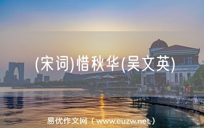 (宋詞)惜秋華(吳文英)由易優(yōu)作文(易優(yōu)悅讀)為大家精心整理發(fā)布,學(xué)作文,學(xué)閱讀,提升語(yǔ)文閱讀寫作能力,就來(lái)易優(yōu)悅讀。作文培訓(xùn),閱讀培訓(xùn),易優(yōu)悅讀助力每個(gè)孩子成為語(yǔ)文學(xué)霸。