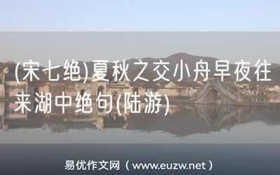 (宋七絕)夏秋之交小舟早夜往來(lái)湖中絕句(陸游)由易優(yōu)作文(易優(yōu)悅讀)為大家精心整理發(fā)布,學(xué)作文,學(xué)閱讀,提升語(yǔ)文閱讀寫(xiě)作能力,就來(lái)易優(yōu)悅讀。作文培訓(xùn),閱讀培訓(xùn),易優(yōu)悅讀助力每個(gè)孩子成為語(yǔ)文學(xué)霸。