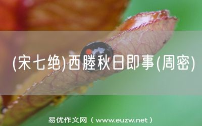 (宋七絕)西塍秋日即事(周密)由易優(yōu)作文(易優(yōu)悅讀)為大家精心整理發(fā)布,學(xué)作文,學(xué)閱讀,提升語文閱讀寫作能力,就來易優(yōu)悅讀。作文培訓(xùn),閱讀培訓(xùn),易優(yōu)悅讀助力每個(gè)孩子成為語文學(xué)霸。