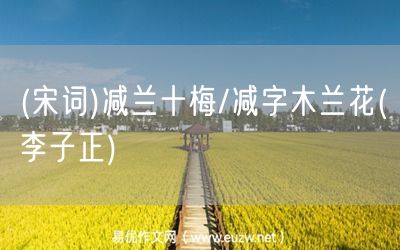 (宋詞)減蘭十梅/減字木蘭花(李子正)由易優(yōu)作文(易優(yōu)悅讀)為大家精心整理發(fā)布,學(xué)作文,學(xué)閱讀,提升語(yǔ)文閱讀寫(xiě)作能力,就來(lái)易優(yōu)悅讀。作文培訓(xùn),閱讀培訓(xùn),易優(yōu)悅讀助力每個(gè)孩子成為語(yǔ)文學(xué)霸。
