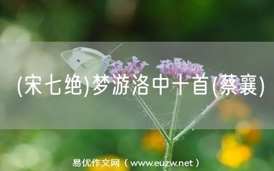 (宋七絕)夢(mèng)游洛中十首(蔡襄)由易優(yōu)作文(易優(yōu)悅讀)為大家精心整理發(fā)布,學(xué)作文,學(xué)閱讀,提升語文閱讀寫作能力,就來易優(yōu)悅讀。作文培訓(xùn),閱讀培訓(xùn),易優(yōu)悅讀助力每個(gè)孩子成為語文學(xué)霸。