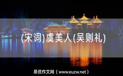 (宋詞)虞美人(吳則禮)由易優(yōu)作文(易優(yōu)悅讀)為大家精心整理發(fā)布,學(xué)作文,學(xué)閱讀,提升語(yǔ)文閱讀寫(xiě)作能力,就來(lái)易優(yōu)悅讀。作文培訓(xùn),閱讀培訓(xùn),易優(yōu)悅讀助力每個(gè)孩子成為語(yǔ)文學(xué)霸。