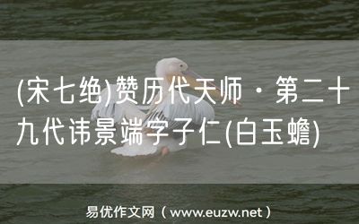(宋七絕)贊歷代天師·第二十九代諱景端字子仁(白玉蟾)由易優(yōu)作文(易優(yōu)悅讀)為大家精心整理發(fā)布,學(xué)作文,學(xué)閱讀,提升語文閱讀寫作能力,就來易優(yōu)悅讀。作文培訓(xùn),閱讀培訓(xùn),易優(yōu)悅讀助力每個(gè)孩子成為語文學(xué)霸。