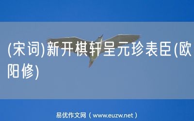 (宋詞)新開棋軒呈元珍表臣(歐陽修)由易優(yōu)作文(易優(yōu)悅讀)為大家精心整理發(fā)布,學(xué)作文,學(xué)閱讀,提升語文閱讀寫作能力,就來易優(yōu)悅讀。作文培訓(xùn),閱讀培訓(xùn),易優(yōu)悅讀助力每個(gè)孩子成為語文學(xué)霸。