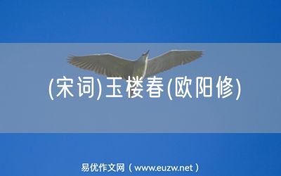 (宋詞)玉樓春(歐陽修)由易優(yōu)作文(易優(yōu)悅讀)為大家精心整理發(fā)布,學(xué)作文,學(xué)閱讀,提升語文閱讀寫作能力,就來易優(yōu)悅讀。作文培訓(xùn),閱讀培訓(xùn),易優(yōu)悅讀助力每個(gè)孩子成為語文學(xué)霸。