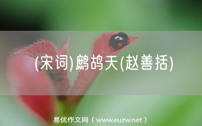 (宋詞)鷓鴣天(趙善括)由易優(yōu)作文(易優(yōu)悅讀)為大家精心整理發(fā)布,學(xué)作文,學(xué)閱讀,提升語文閱讀寫作能力,就來易優(yōu)悅讀。作文培訓(xùn),閱讀培訓(xùn),易優(yōu)悅讀助力每個(gè)孩子成為語文學(xué)霸。
