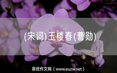(宋詞)玉樓春(曹勛)由易優(yōu)作文(易優(yōu)悅讀)為大家精心整理發(fā)布,學(xué)作文,學(xué)閱讀,提升語文閱讀寫作能力,就來易優(yōu)悅讀。作文培訓(xùn),閱讀培訓(xùn),易優(yōu)悅讀助力每個(gè)孩子成為語文學(xué)霸。