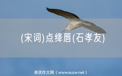 (宋詞)點(diǎn)絳唇(石孝友)由易優(yōu)作文(易優(yōu)悅讀)為大家精心整理發(fā)布,學(xué)作文,學(xué)閱讀,提升語(yǔ)文閱讀寫(xiě)作能力,就來(lái)易優(yōu)悅讀。作文培訓(xùn),閱讀培訓(xùn),易優(yōu)悅讀助力每個(gè)孩子成為語(yǔ)文學(xué)霸。