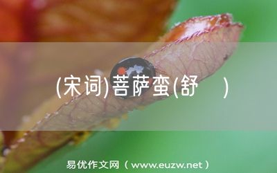 (宋詞)菩薩蠻(舒亶)由易優(yōu)作文(易優(yōu)悅讀)為大家精心整理發(fā)布,學(xué)作文,學(xué)閱讀,提升語文閱讀寫作能力,就來易優(yōu)悅讀。作文培訓(xùn),閱讀培訓(xùn),易優(yōu)悅讀助力每個(gè)孩子成為語文學(xué)霸。