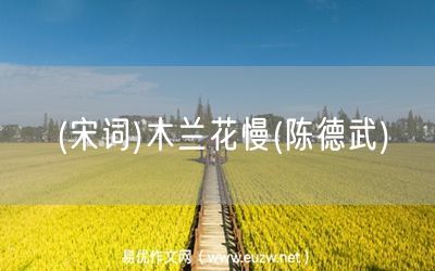 (宋詞)木蘭花慢(陳德武)由易優(yōu)作文(易優(yōu)悅讀)為大家精心整理發(fā)布,學(xué)作文,學(xué)閱讀,提升語文閱讀寫作能力,就來易優(yōu)悅讀。作文培訓(xùn),閱讀培訓(xùn),易優(yōu)悅讀助力每個孩子成為語文學(xué)霸。