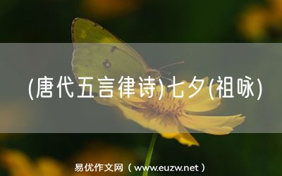 (唐代五言律詩)七夕(祖詠)由易優(yōu)作文(易優(yōu)悅讀)為大家精心整理發(fā)布,學(xué)作文,學(xué)閱讀,提升語文閱讀寫作能力,就來易優(yōu)悅讀。作文培訓(xùn),閱讀培訓(xùn),易優(yōu)悅讀助力每個孩子成為語文學(xué)霸。