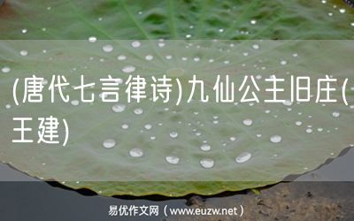 (唐代七言律詩)九仙公主舊莊(王建)由易優(yōu)作文(易優(yōu)悅讀)為大家精心整理發(fā)布,學作文,學閱讀,提升語文閱讀寫作能力,就來易優(yōu)悅讀。作文培訓,閱讀培訓,易優(yōu)悅讀助力每個孩子成為語文學霸。