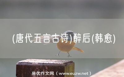 (唐代五言古詩(shī))醉后(韓愈)由易優(yōu)作文(易優(yōu)悅讀)為大家精心整理發(fā)布,學(xué)作文,學(xué)閱讀,提升語(yǔ)文閱讀寫(xiě)作能力,就來(lái)易優(yōu)悅讀。作文培訓(xùn),閱讀培訓(xùn),易優(yōu)悅讀助力每個(gè)孩子成為語(yǔ)文學(xué)霸。