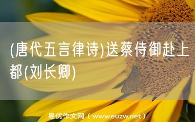 (唐代五言律詩)送蔡侍御赴上都(劉長卿)由易優(yōu)作文(易優(yōu)悅讀)為大家精心整理發(fā)布,學作文,學閱讀,提升語文閱讀寫作能力,就來易優(yōu)悅讀。作文培訓,閱讀培訓,易優(yōu)悅讀助力每個孩子成為語文學霸。