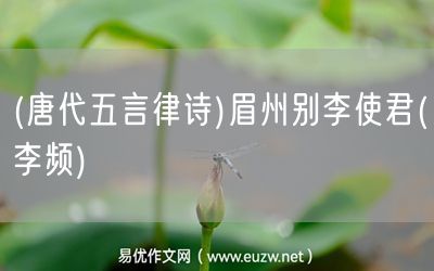 (唐代五言律詩)眉州別李使君(李頻)由易優(yōu)作文(易優(yōu)悅讀)為大家精心整理發(fā)布,學作文,學閱讀,提升語文閱讀寫作能力,就來易優(yōu)悅讀。作文培訓,閱讀培訓,易優(yōu)悅讀助力每個孩子成為語文學霸。