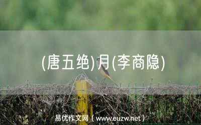 (唐五絕)月(李商隱)由易優(yōu)作文(易優(yōu)悅讀)為大家精心整理發(fā)布,學(xué)作文,學(xué)閱讀,提升語文閱讀寫作能力,就來易優(yōu)悅讀。作文培訓(xùn),閱讀培訓(xùn),易優(yōu)悅讀助力每個(gè)孩子成為語文學(xué)霸。