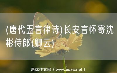(唐代五言律詩)長安言懷寄沈彬侍郎(卿云)由易優(yōu)作文(易優(yōu)悅讀)為大家精心整理發(fā)布,學作文,學閱讀,提升語文閱讀寫作能力,就來易優(yōu)悅讀。作文培訓,閱讀培訓,易優(yōu)悅讀助力每個孩子成為語文學霸。