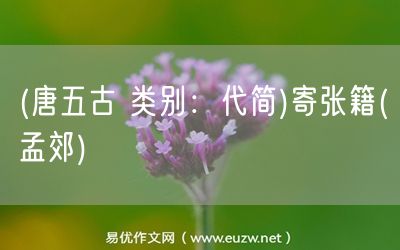 (唐五古 類(lèi)別:代簡(jiǎn))寄張籍(孟郊)由易優(yōu)作文(易優(yōu)悅讀)為大家精心整理發(fā)布,學(xué)作文,學(xué)閱讀,提升語(yǔ)文閱讀寫(xiě)作能力,就來(lái)易優(yōu)悅讀。作文培訓(xùn),閱讀培訓(xùn),易優(yōu)悅讀助力每個(gè)孩子成為語(yǔ)文學(xué)霸。