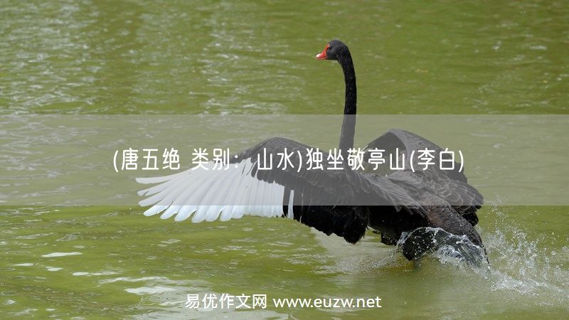 (唐五絕 類別:山水)獨坐敬亭山(李白)由易優(yōu)作文(易優(yōu)悅讀)為大家精心整理發(fā)布,學作文,學閱讀,提升語文閱讀寫作能力,就來易優(yōu)悅讀。作文培訓,閱讀培訓,易優(yōu)悅讀助力每個孩子成為語文學霸。