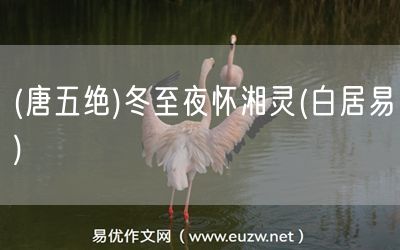(唐五絕)冬至夜懷湘靈(白居易)由易優(yōu)作文(易優(yōu)悅讀)為大家精心整理發(fā)布,學作文,學閱讀,提升語文閱讀寫作能力,就來易優(yōu)悅讀。作文培訓,閱讀培訓,易優(yōu)悅讀助力每個孩子成為語文學霸。