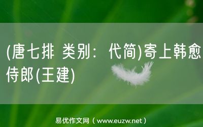 易優(yōu)作文網(wǎng)——(唐七排 類別:代簡)寄上韓愈侍郎(王建)