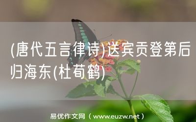(唐代五言律詩)送賓貢登第后歸海東(杜荀鶴)由易優(yōu)作文(易優(yōu)悅讀)為大家精心整理發(fā)布,學(xué)作文,學(xué)閱讀,提升語文閱讀寫作能力,就來易優(yōu)悅讀。作文培訓(xùn),閱讀培訓(xùn),易優(yōu)悅讀助力每個孩子成為語文學(xué)霸。