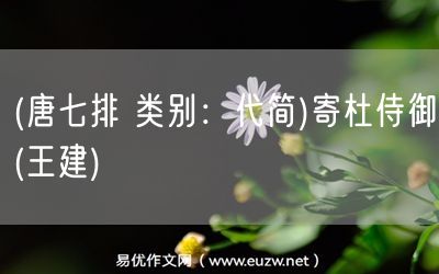 (唐七排 類別:代簡)寄杜侍御(王建)由易優(yōu)作文(易優(yōu)悅讀)為大家精心整理發(fā)布,學作文,學閱讀,提升語文閱讀寫作能力,就來易優(yōu)悅讀。作文培訓,閱讀培訓,易優(yōu)悅讀助力每個孩子成為語文學霸。
