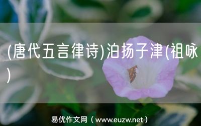 (唐代五言律詩)泊揚子津(祖詠)由易優(yōu)作文(易優(yōu)悅讀)為大家精心整理發(fā)布,學(xué)作文,學(xué)閱讀,提升語文閱讀寫作能力,就來易優(yōu)悅讀。作文培訓(xùn),閱讀培訓(xùn),易優(yōu)悅讀助力每個孩子成為語文學(xué)霸。