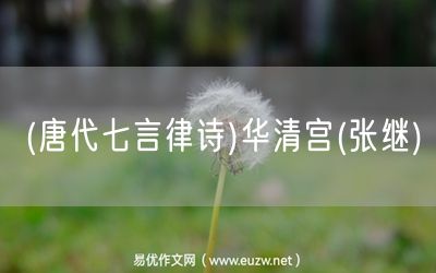 (唐代七言律詩)華清宮(張繼)由易優(yōu)作文(易優(yōu)悅讀)為大家精心整理發(fā)布,學(xué)作文,學(xué)閱讀,提升語文閱讀寫作能力,就來易優(yōu)悅讀。作文培訓(xùn),閱讀培訓(xùn),易優(yōu)悅讀助力每個孩子成為語文學(xué)霸。